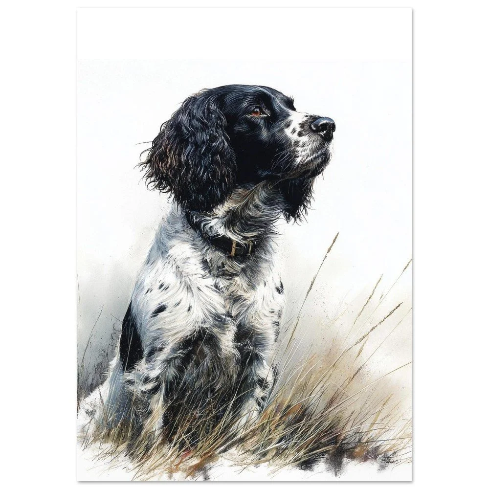 Celebrate the beauty of nature and the elegance of spaniels with our stunning Field Gundog Poster. Crafted using lighter-weight, uncoated classic matte paper, this poster is designed to withstand the test of time. Featuring a matte, smooth, and non-reflective surface, it ensures vibrant visuals without distractions. With a paper weight of 170 gsm (65 lb) and a thickness of 0.19 mm (7.5 mils), it combines sturdiness and durability for lasting decor. Made from FSC-certified materials, this poster is an eco-friendly choice for those who care about our planet. Available in 29 different sizes (inches for US&CA and cms for the rest of the world), it fits perfectly in any home or office. Enjoy the convenience of no minimum orders, as each piece is printed and shipped on demand. Elevate your space with this exquisite piece of art – order yours today!